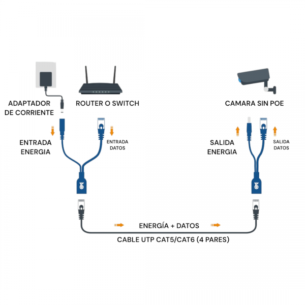 Adaptador PoE Pasivo Cable Inyector / Splitter para Cámaras IP