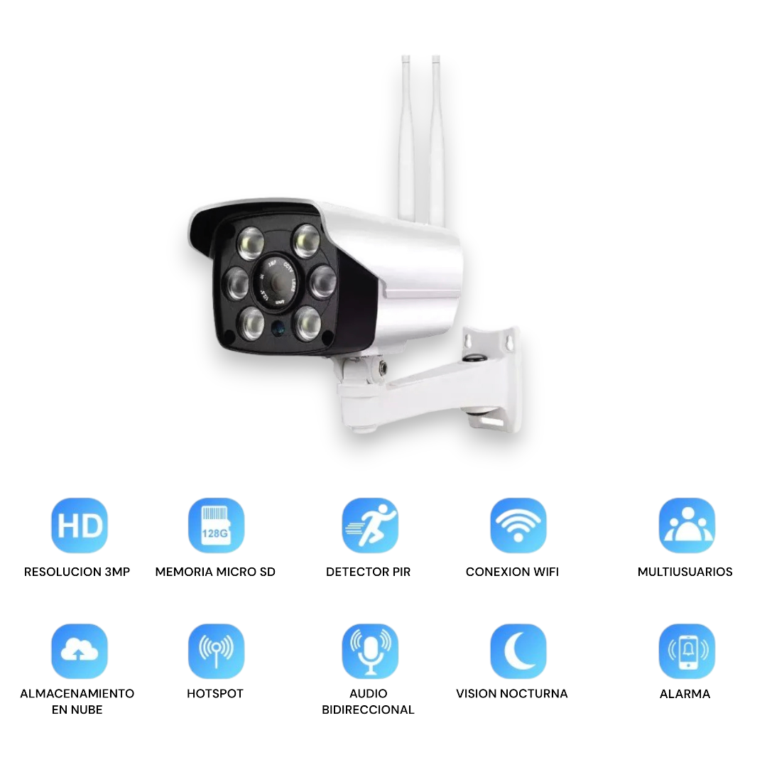 📷 Cámara Bala IP WiFi 3MP + MicroSD 64GB