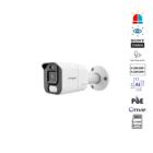 Gracias a su sensor CMOS retroiluminado SONY Starvis de 1/2.8”, esta cámara proporciona imágenes nítidas y de alto alcance tanto de día como de noche. Incorpora luz cálida LED de 4000 K para visión a color en condiciones de baja luz y luz estroboscópica roja y azul para disuadir intrusos de manera inmediata.