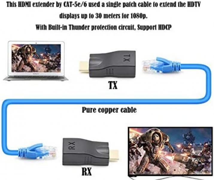 Extensor HDMI por UTP 30 Metros RJ45 4K/2K Full HD – Plug & Play para DVR, TV y Proyectores