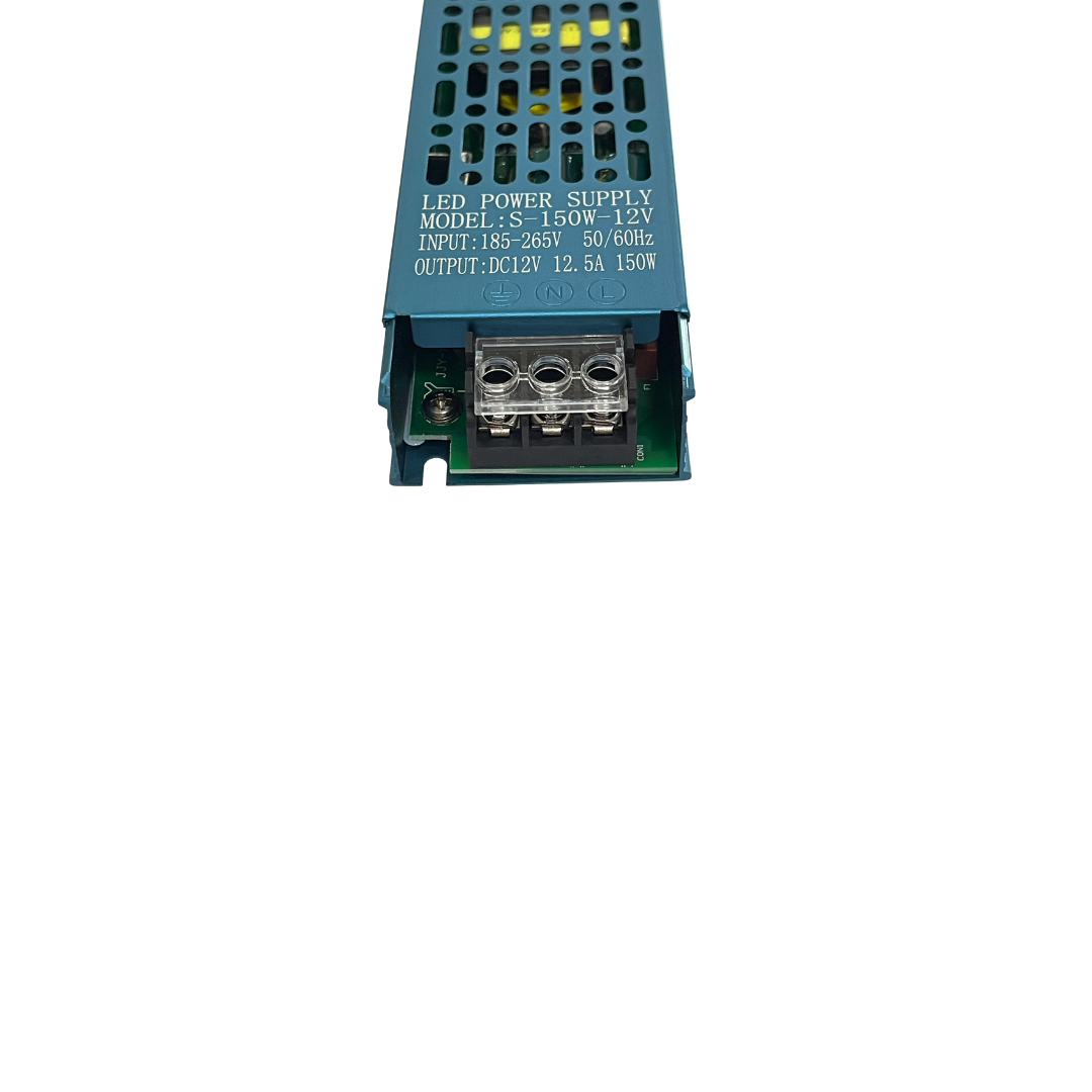 Su diseño ultra compacto facilita la instalación en espacios reducidos, siendo ideal para aplicaciones residenciales y comerciales. Entrega una potencia total de 150W con una salida de 12V y 12.5A, asegurando un suministro constante y estable.
