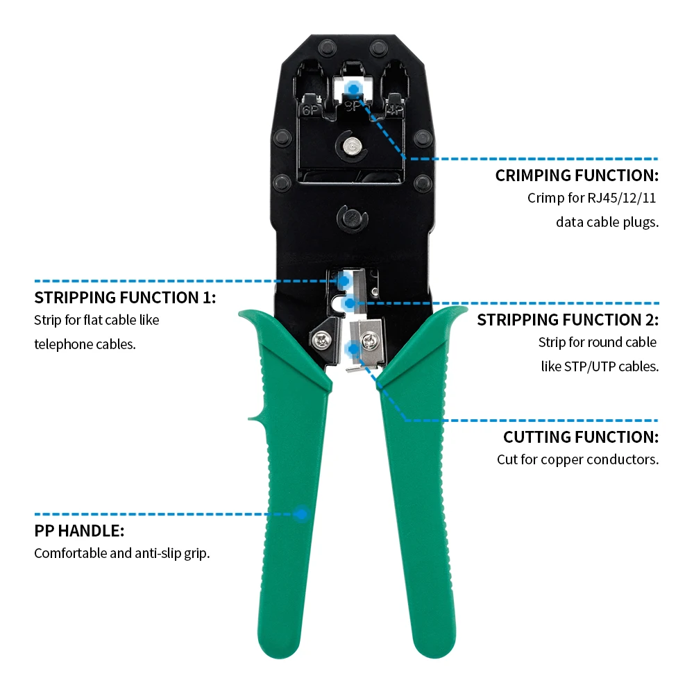 Kit Herramientas de Red RJ45 RJ11 RJ12 con Probador LAN y Crimpeadora cantidad