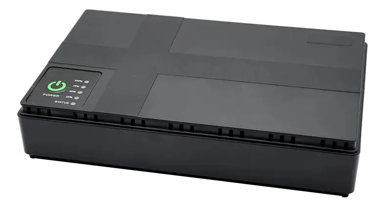 Mantén tu internet y sistemas de seguridad funcionando incluso durante cortes de energía con este Mini UPS portátil de 10400mAh (22Wh), ideal para routers, módems y cámaras de vigilancia.