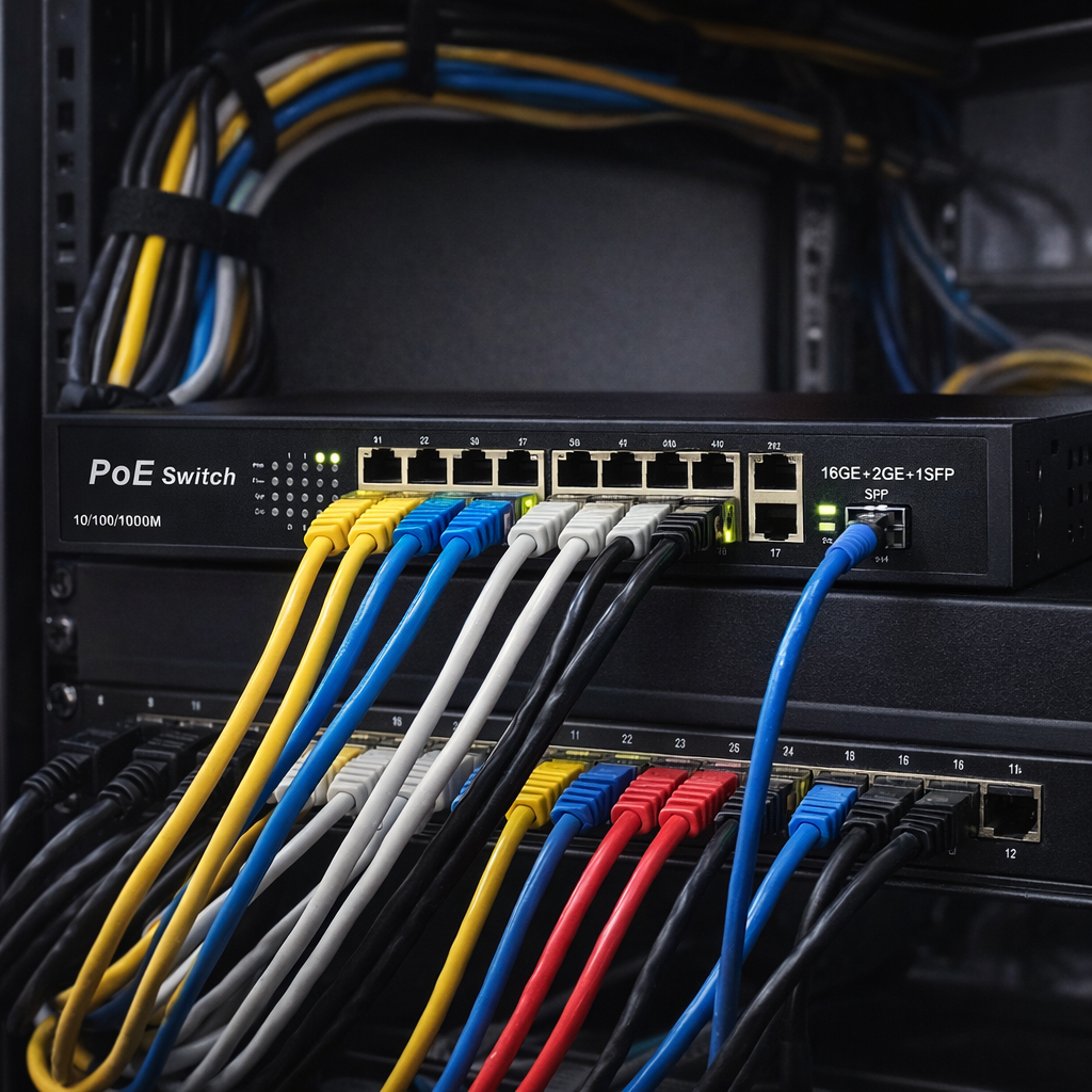 Switch PoE 16 Puertos Gigabit + 2 Uplink + 1 SFP – 200W – Alto Rendimiento Profesional