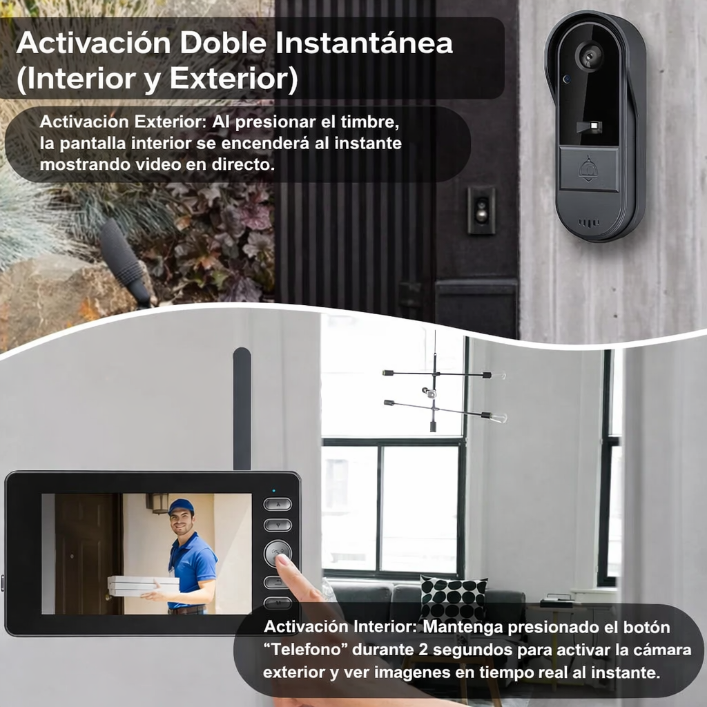 El timbre inalámbrico con cámara y monitor interior es una solución práctica para quienes buscan seguridad y comunicación directa en la entrada de su hogar o negocio, sin depender de WiFi, aplicaciones móviles ni suscripciones.