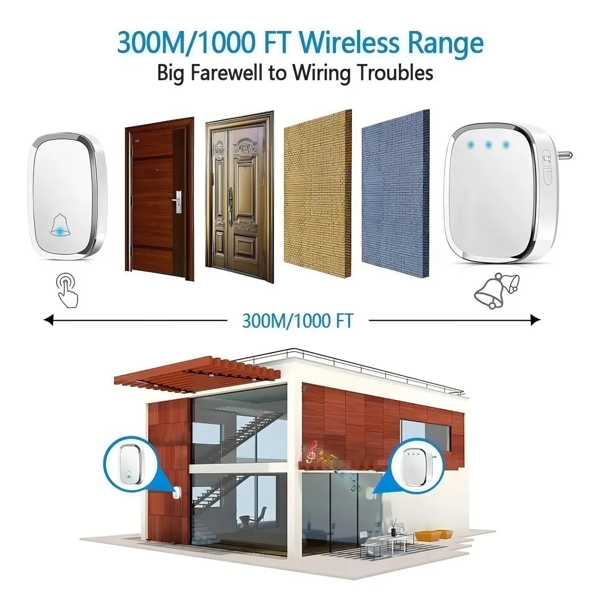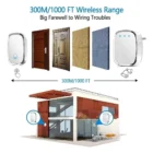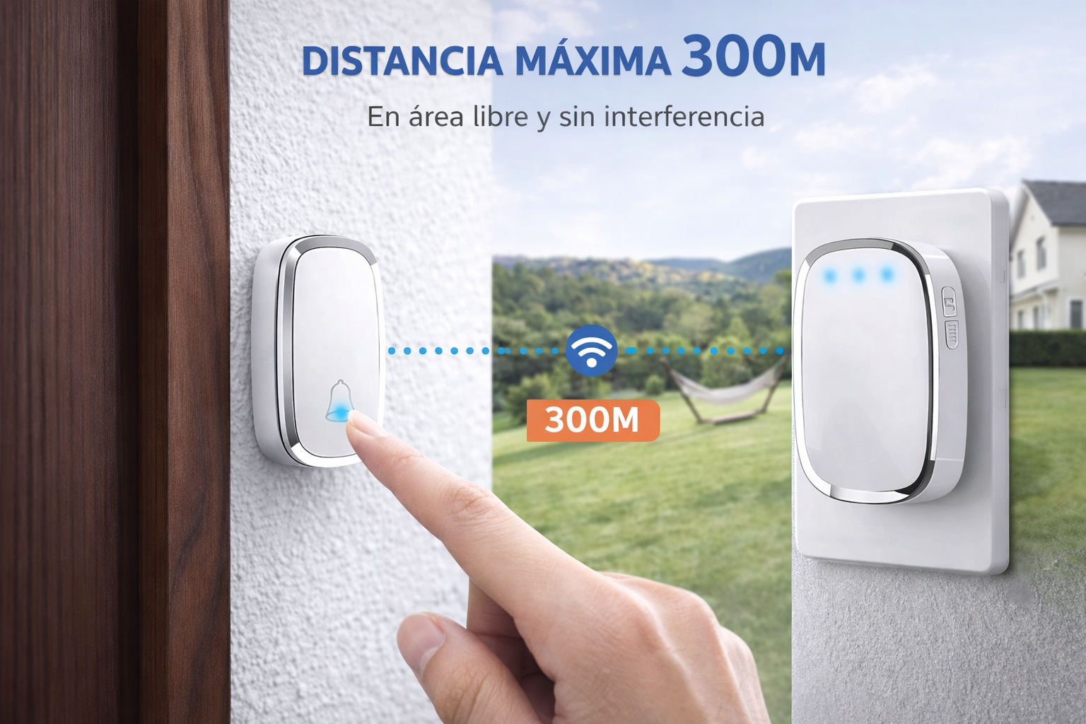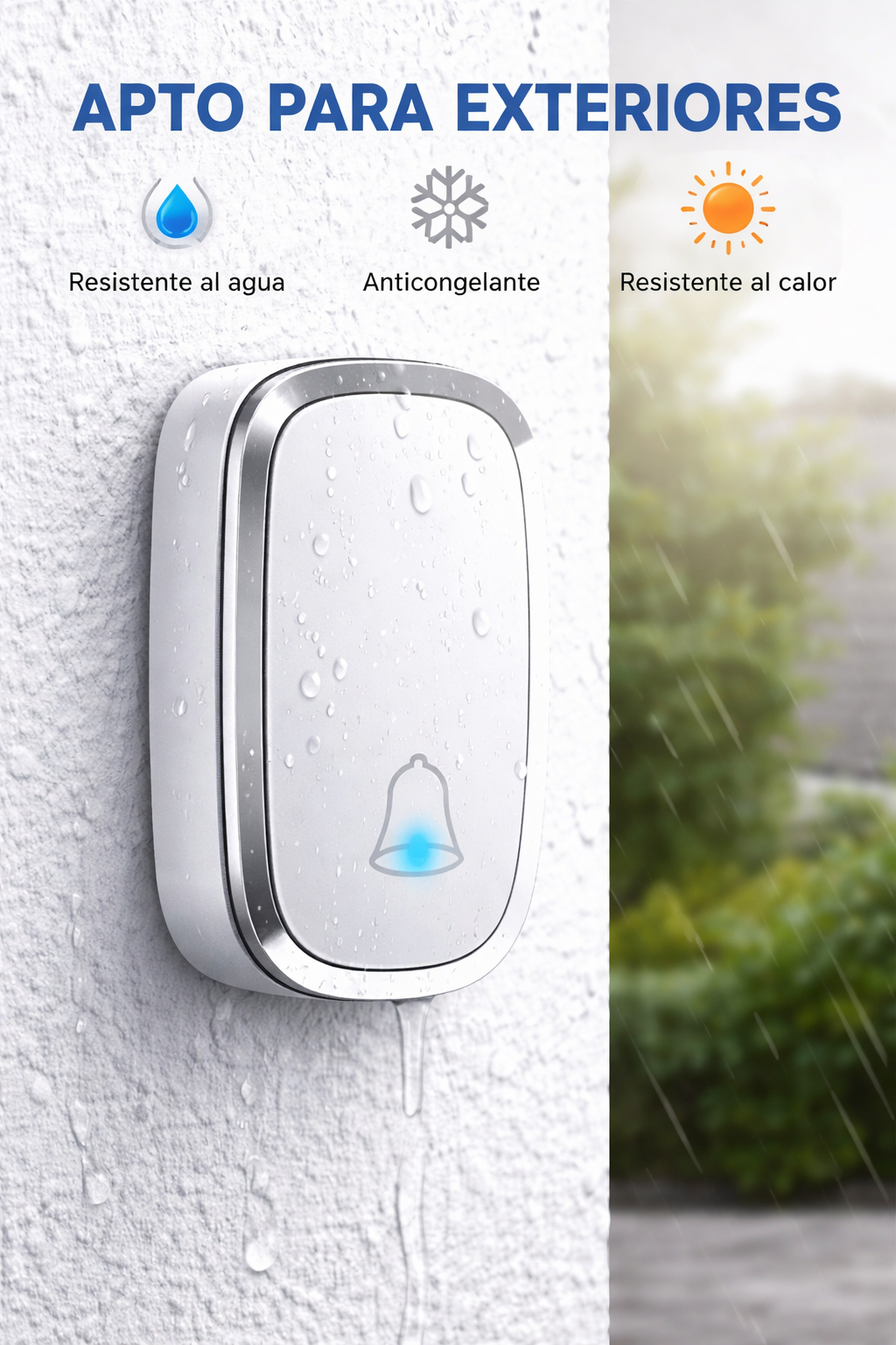 Timbre Inalámbrico Impermeable con Luz LED – Alcance 300m y 36 Melodías